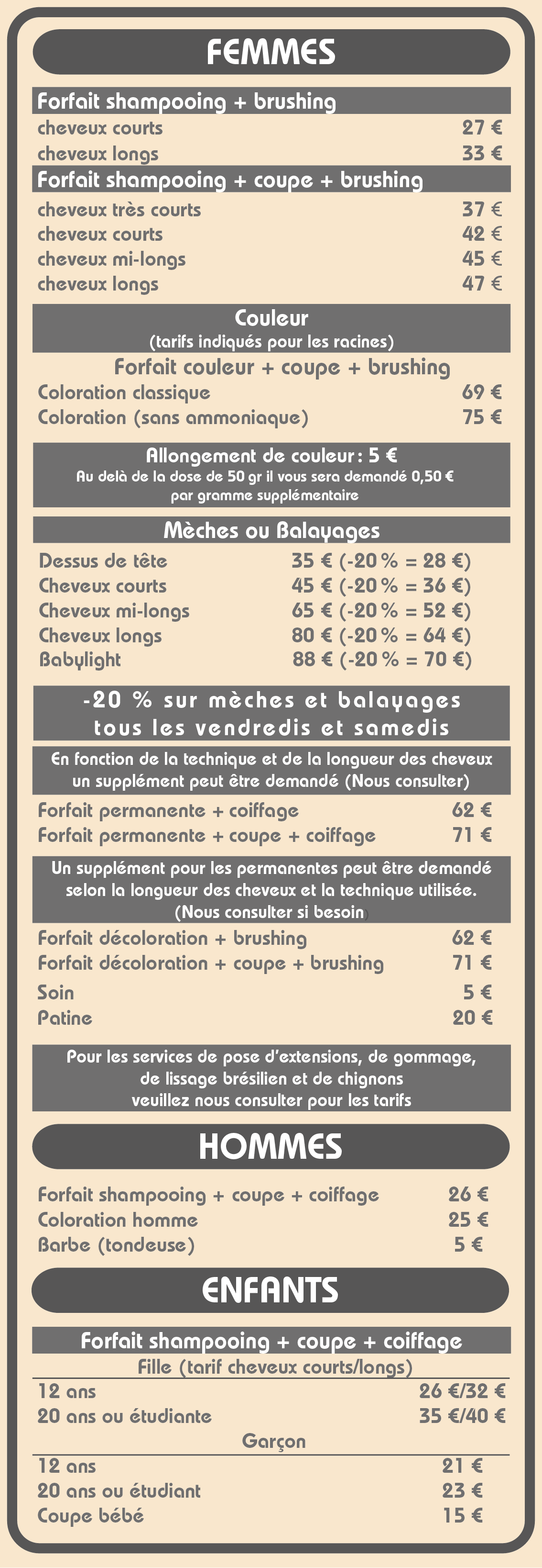 Tarifs